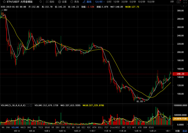 在 2018 年 11 月至 12 月之间,ETH 价格遭遇了大幅下跌,ETH 从 220 美元跌至不到 85 美元,下跌 61% 。2019 年 1 月 2日,ETH 的市值超越 XRP,重回第二位。在过去 30 天 ETH 的价格已经上涨了 80%,截至发稿时,ETH 的价格维持在 150 美元左右。