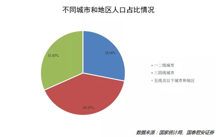 看惯了一二线城市的人丁兴旺,人们却常常想不到在下沉市场还有着多到超乎想象的庞大人口规模。综合国家统计局与国泰君安证券研报的有关数据,全国有超过70%的人都处在下沉市场之中,换言之,一二线城市居民约3.9亿人,三线以下城市及农村乡镇地区居民规模多达10亿人——10亿人,这是一个约等于美国人口总数三倍的存在。