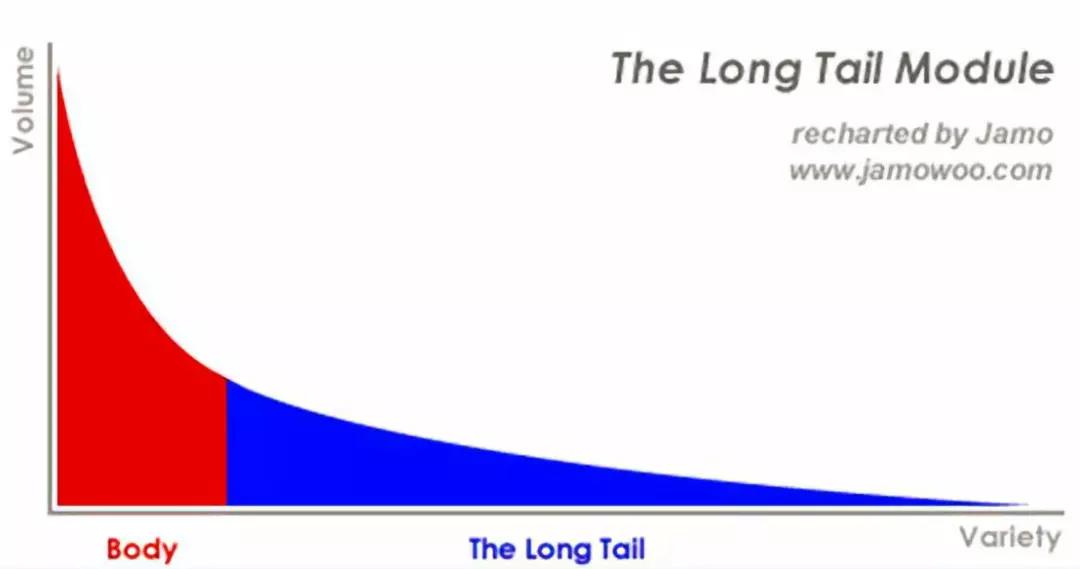 在长尾理论中,那些热门的流行的需求被称为头部需求,不热门的分散需求被称为长尾需求。人们的眼光往往会聚焦在头部需求上,却不曾留意到,那些不起眼的个性化与分散的长尾需求,累加起来会形成一个比流行需求更大的市场。