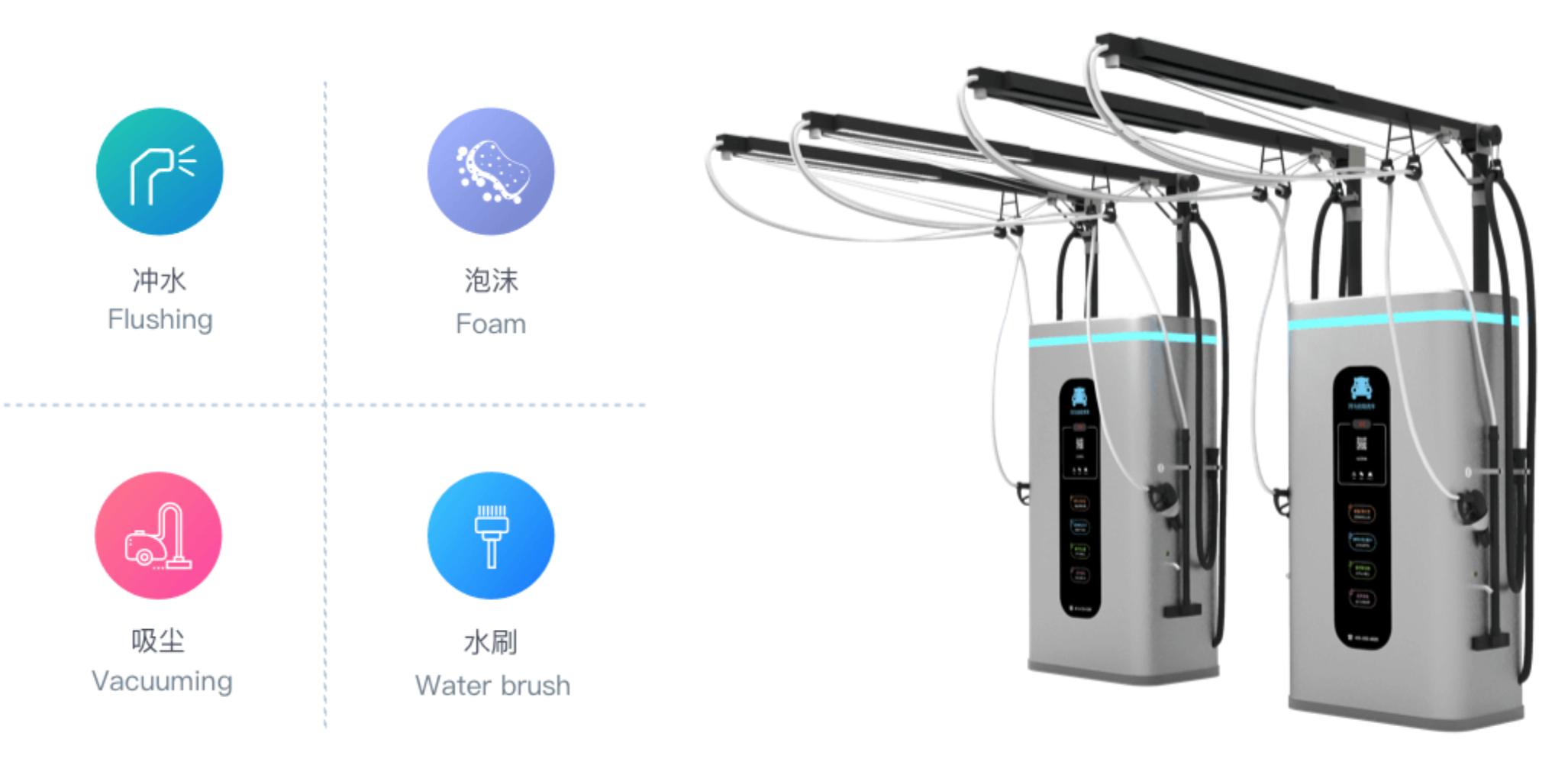 该公司成立于2018年1月,目前已经在郑州、北京、武汉、佛山、合肥、成都和南宁落地,共有100多个点位,与碧桂园、保利、万科等多家大型物业签约,将自主研发的洗车设备投放在小区停车场,可以做到10分钟快速洗车、24小时营业、完全无人值守。