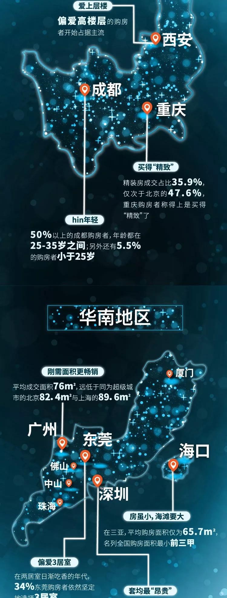 在二手房交易和房屋租赁市场,类似的差别同样存在。比如在二手房交易层面,广州和东莞虽同处华南,却一个爱刚需,一个好三居。再比如在租赁层面,北京的矜持、上海的小资、深圳的利落、成都的安逸、西安的激进,都让人印象深刻。2018年,你生活的城市楼市是什么模样?一起来探寻吧~
