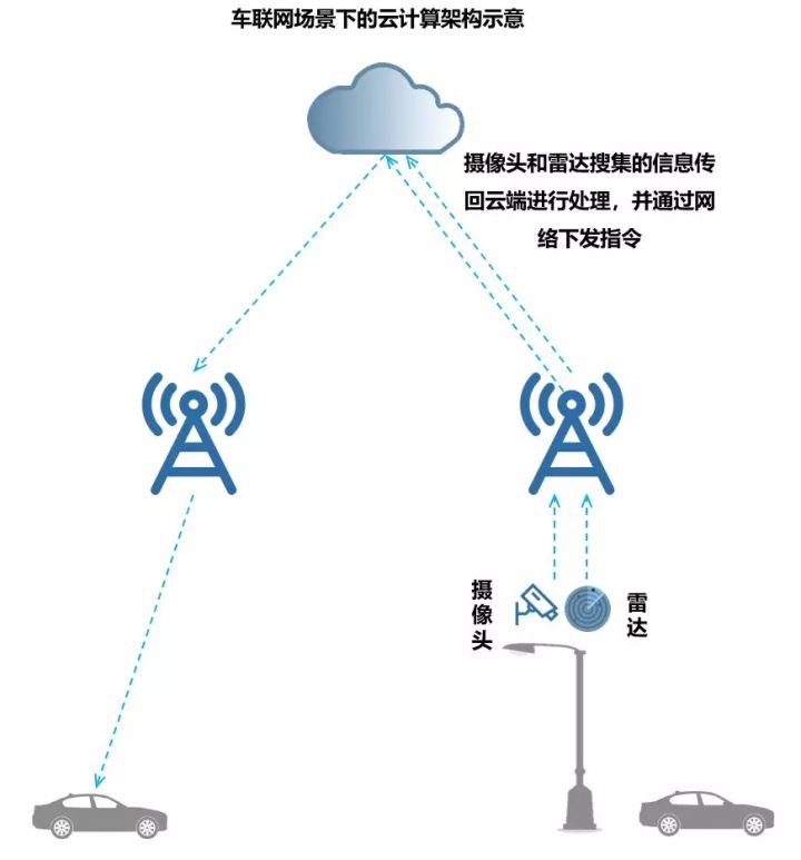 在“云计算”架构下,大量计算集中在云端,各终端将自己需要运算的数据传输到云端进行处理,以更好地支撑那些计算资源消耗大但对时延不太敏感的网络应用,比如照片存储、邮箱等。但对于车联网、自动驾驶等时延敏感且性命攸关的应用,该模式也有其局限性。