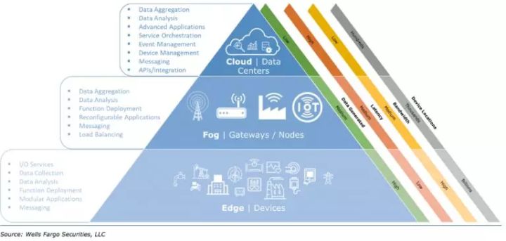 而“雾计算”,可以理解为介于”云”和”边缘”的架构,是将运算任务分配在各条大路中重要的十字路口上完成。