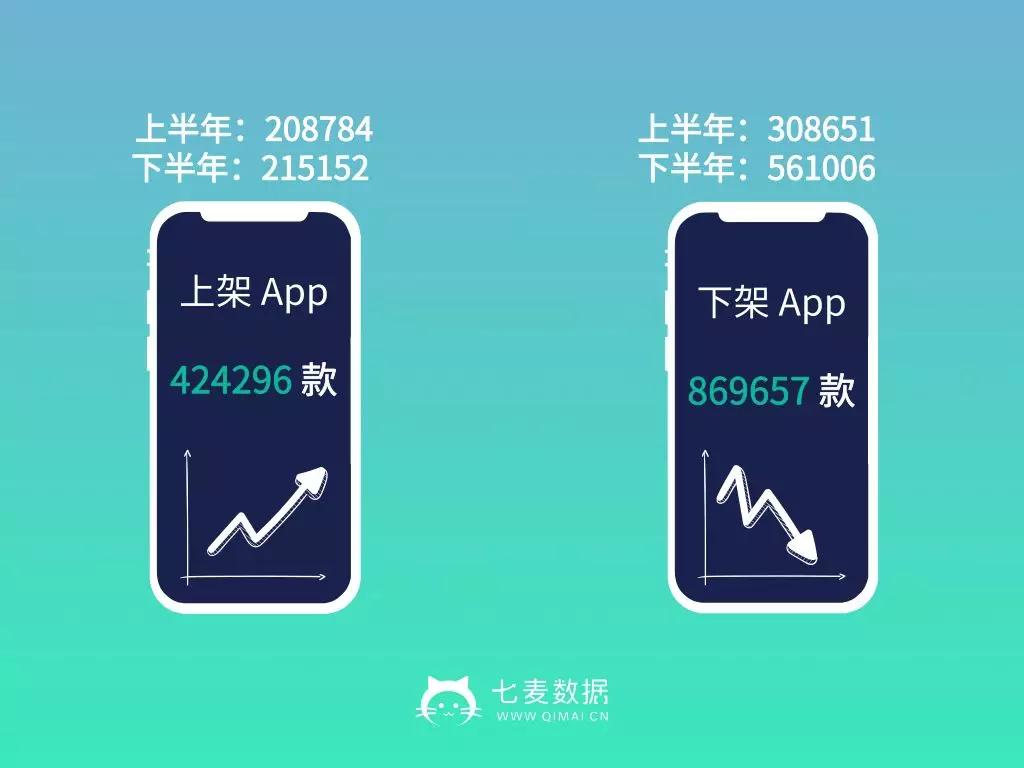 “下架”与“上架”,一直是开发者最关心的两个话题,在过去的一年中,中国区 App Store 共上架 424296 款应用,下架 869657 款应用。
