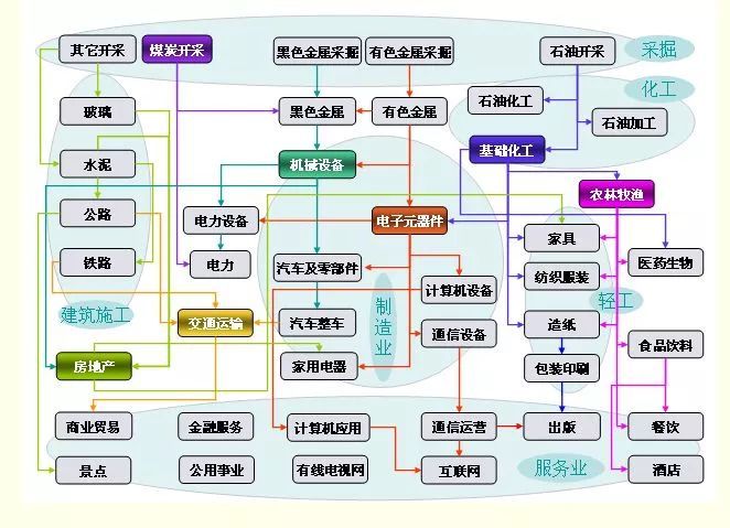 这就是一个国家经济完整的产业链:消费需求是由下游向上游传递,产品供给从上游向下游传递。