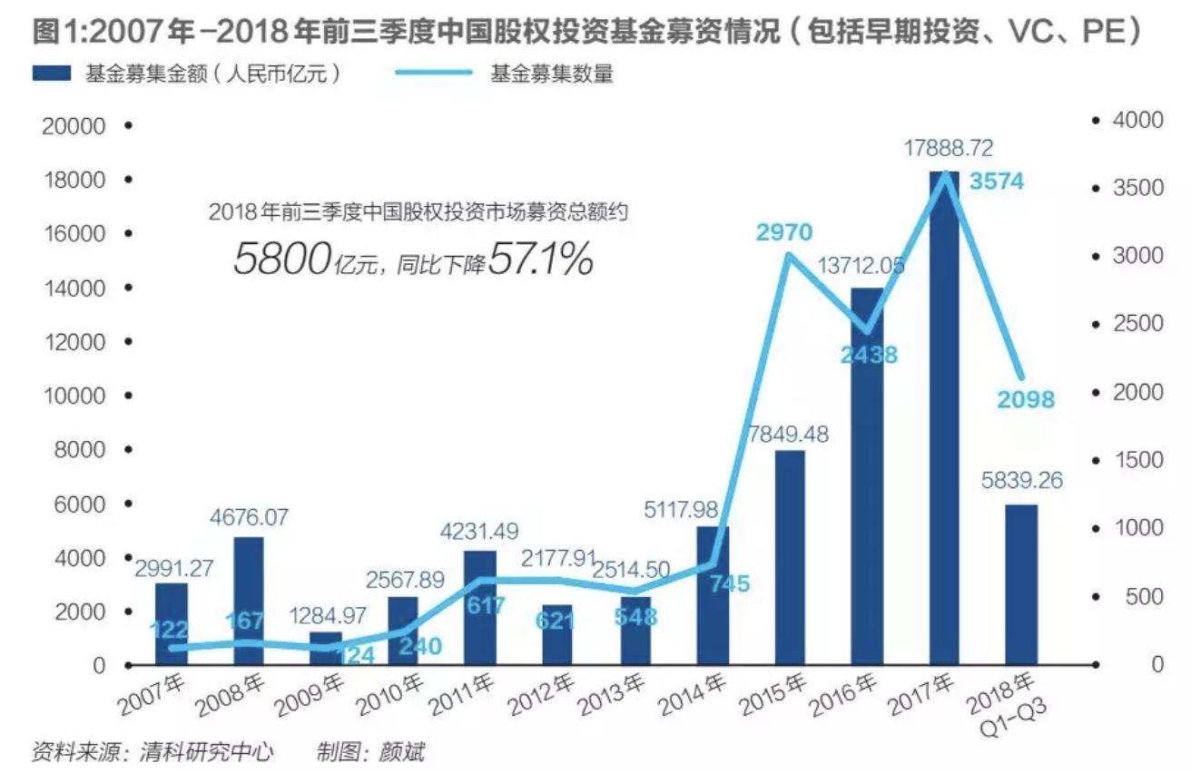 新规的影响立竿见影。清科研究中心提供给《财经》记者的数据显示,2018年前三季度中国股权投资市场募资总额约5800亿元,同比下降57.1%。郭如意说,“好多GP公司拿不到钱了,有些GP第一期的基金就是最后一期。”