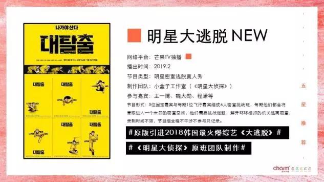 明年,《明星大侦探》将正式推出迷你剧,每季4~6集,每集40分钟。这支团队还正在制作密室逃脱类型的新节目《明星大逃脱》,继续挖掘IP价值。