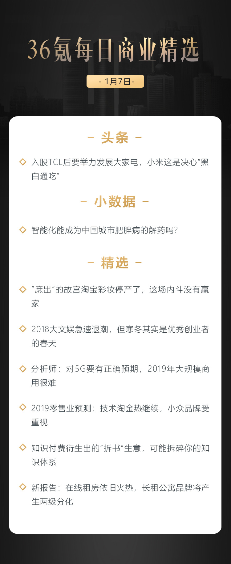 本文来自36氪付费栏目《36氪每日商业精选》——1月7日