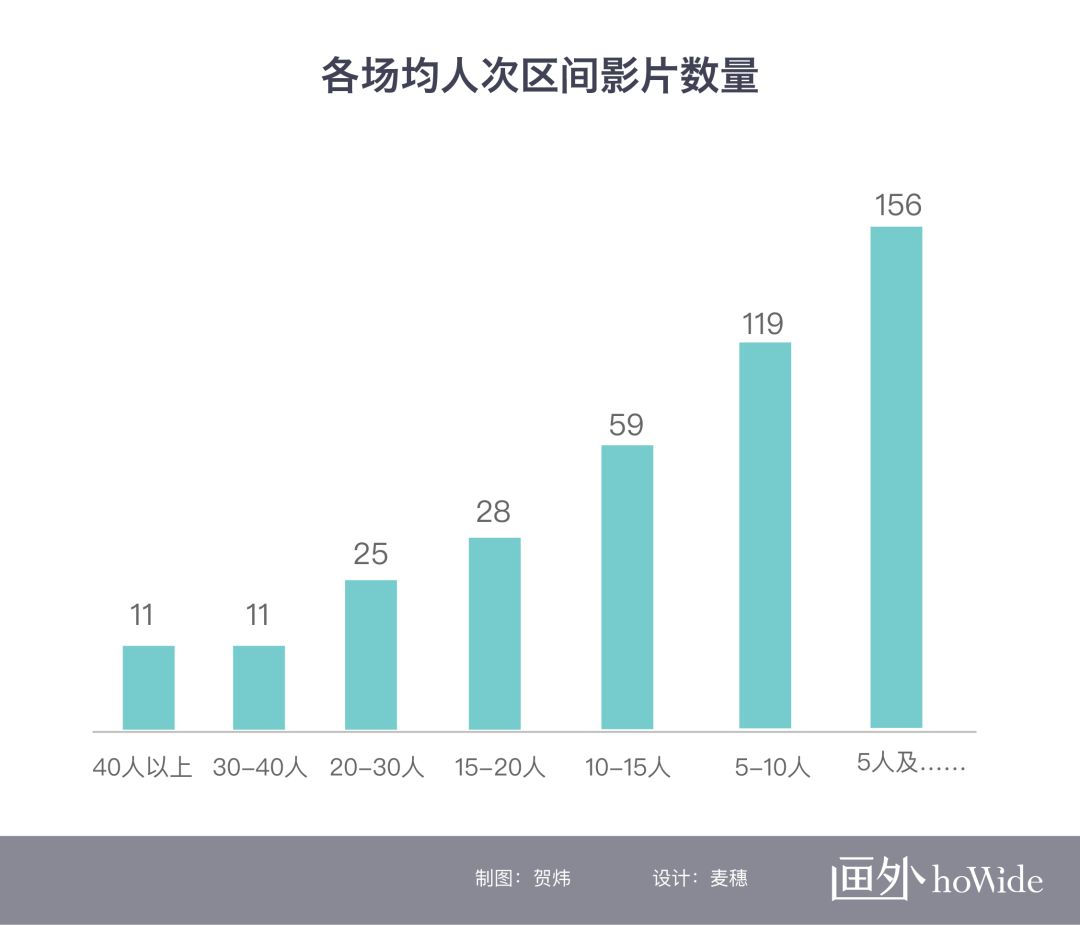 场均人次最高的影片是《四个春天》,达66人/场,《浴血广昌》以65人/场紧随其后。场均人次在40人/场以上的影片共11部,只有《捉妖记2》和《地球最后的夜晚》票房过亿。30-40人/场区间的影片共11部,除春节档的3部大片(《红海》《唐探2》和《女儿国》)外,另外8部影片票房均不过千万。