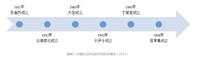 从1931年到1998年,百雀羚、大宝、小护士、佰草集等国产品牌相继成立,此时国产品牌占据市场主导地位。