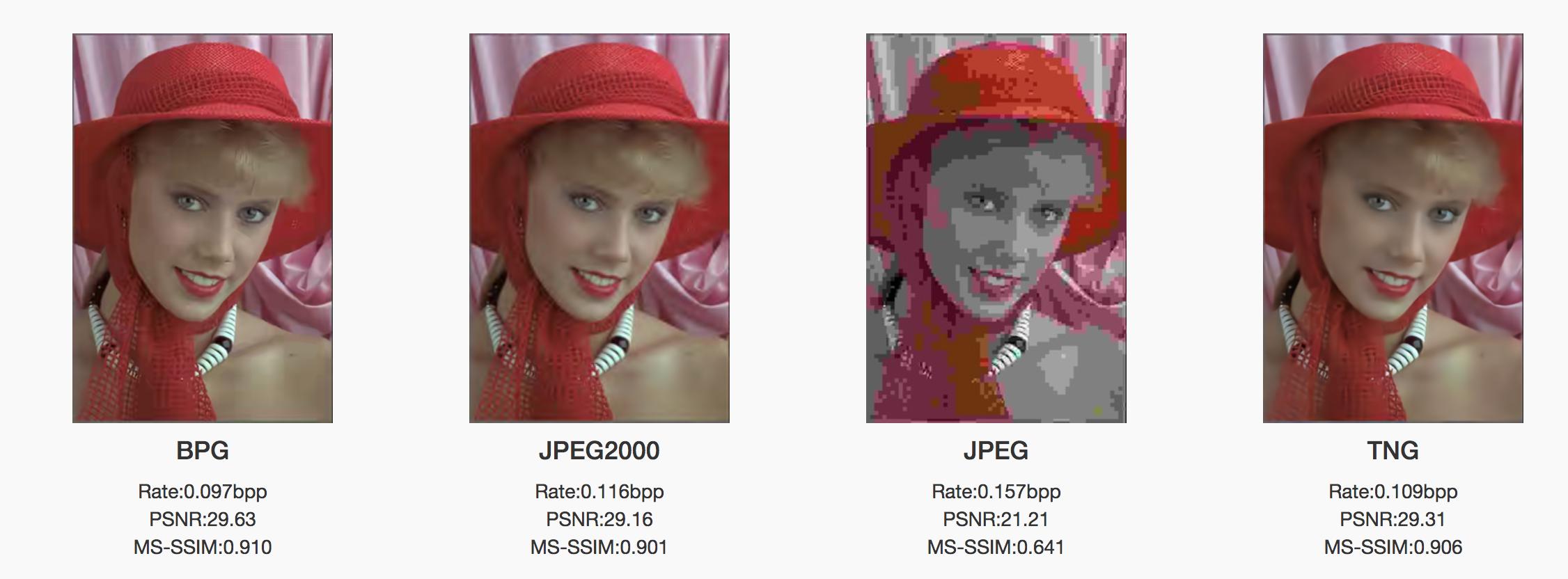 基于神经网络算法,图鸭科技的图像视频压缩效率比主流压缩方案均有所提升:在保证画质情况下,图片压缩效率比JPEG系列提升300%,比WebP (Google)提升200%,比BPG(H.265系列)提升100%;视频压缩效率比H.264提升150%,比H.265/VP9提升100%。