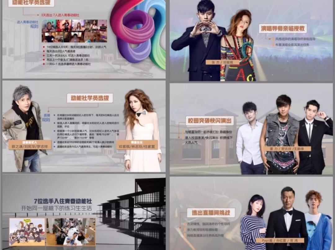 作为综艺节目里的热门品类,音乐选秀任何时候似乎都在推陈出新。据了解,东方卫视《青春动能社》先是通过直播,根据人气从18位候选人中选出7人进入青春动能社,然后在明星社长和动能经纪人的引导下,每天6位候选人进行直播,并有后续的演唱会演出任务等。