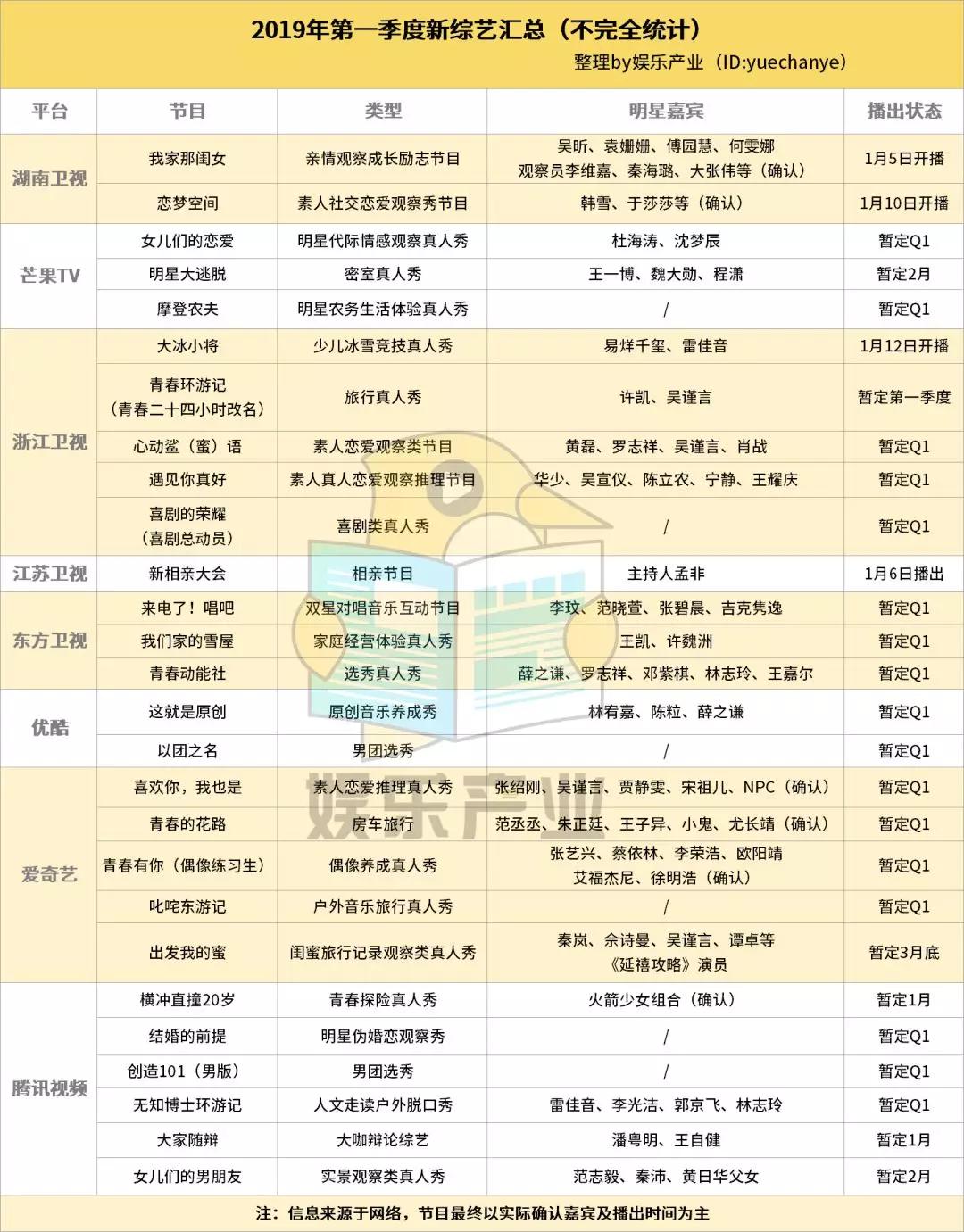 2019 Q1新综艺前瞻:恋爱观察节目扎堆,但大爆款难寻?