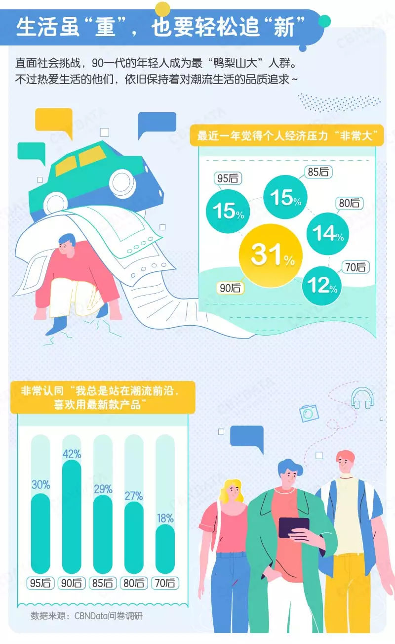 90后正在职场早期上升阶段,为生活奔波奋斗;95后处在学业与工作的转型期,即将经济独立。当这一代年轻人开始独面生活中的挑战,压力随之而来,如何平衡收支释放消费力、随心所欲追求品质生活是他们需要直面的问题。