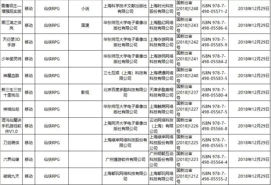 包括三七互娱的《星耀传奇》《神魔血脉》《盛世红颜》,掌趣科技的《冷械岛》,中文在线的《武圣神尊》,文投控股旗下上海都玩网络科技有限公司的《破晓九天》,此外吉比特旗下公司总共拿到了5款游戏版号。