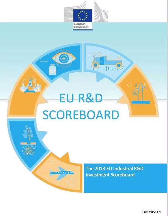 欧盟下属联合研究中心近日公布了2018年度全球企业R&D研发投资排行榜(EU Industrial R&D Investment Scoreboard)。报告研究了全球经济实力爬升强劲的国家和地区,包括2500家公司2个财政年度的研发投入。这些公司占据了世界上90%商业性研发投入份额。