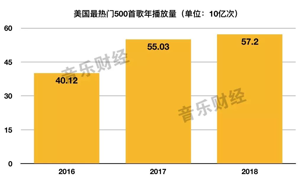 虽然这一数字增长了20亿次,但相较全年1500亿次的增长来看是微乎其微的。所以,不难得出的结论是,至少2017—2018年贡献美国流媒体播放量大幅增长的曲目是来自前500首热单以外的。