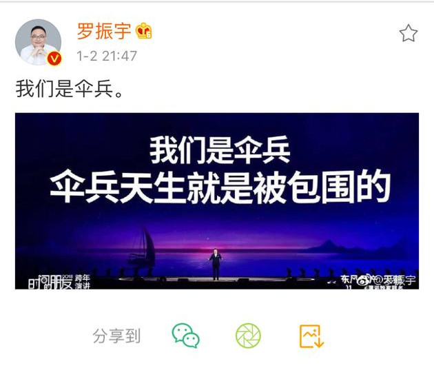 此前罗振宇也侧面回应了观众的质疑,他在微博发布了一张演讲现场图片,“我们是伞兵,伞兵天生就是被包围的。”