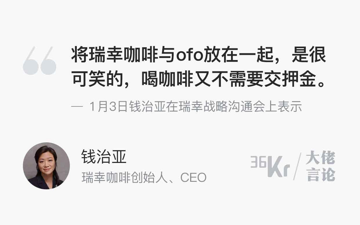 大佬言论 | 钱治亚:将瑞幸跟ofo对比很可笑