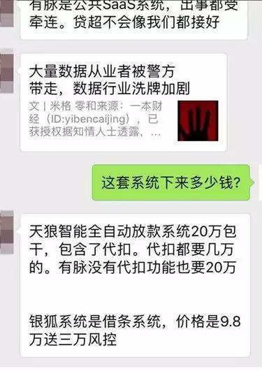 “我们是突然听到了风声,说监管要查现金贷的系统。”借贷宝系统销售李学伟称,他们因此紧急推出天狼系统。