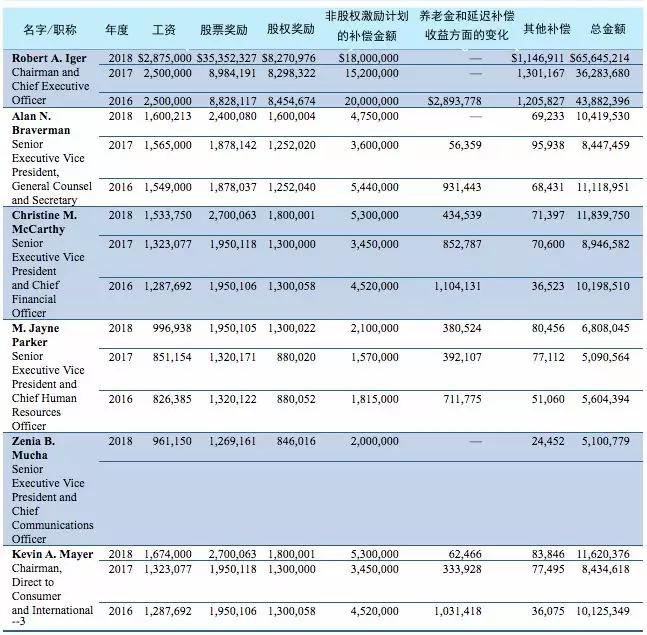 而这些成绩,也离不开公司的员工和高管。在迪士尼披露的文件中,也详细地说明了其他高管的薪酬。