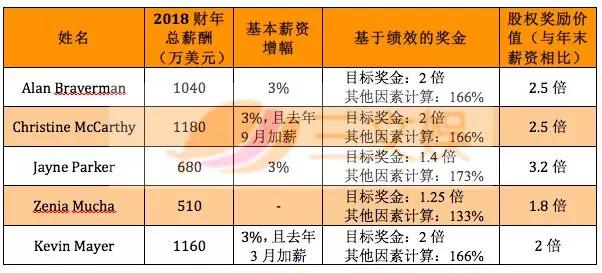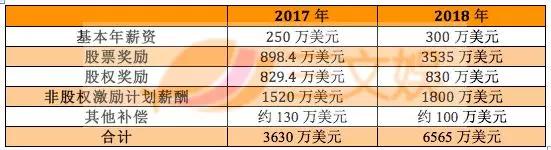 其中,基本薪资上涨了50万美元;股票奖励增加了2636.6万美元;非股权激励计划薪酬上涨了280万美元。股权奖励基本与2017年持平。