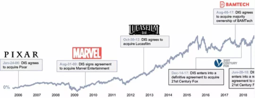 注:包括迪士尼,哥伦比亚广播公司,21世纪福克斯,维亚康姆和康卡斯特的市值加权TSR。时代华纳因其于2018年被AT&T收购而被排除在外。