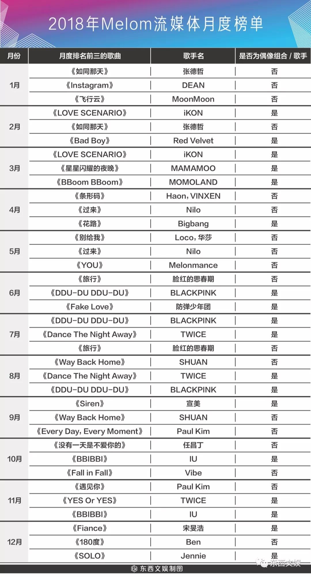 由此可见,2018年仍旧延续了韩国偶像市场上男团销量占优、女团流媒体占优的特征。