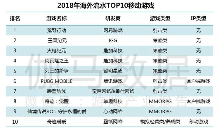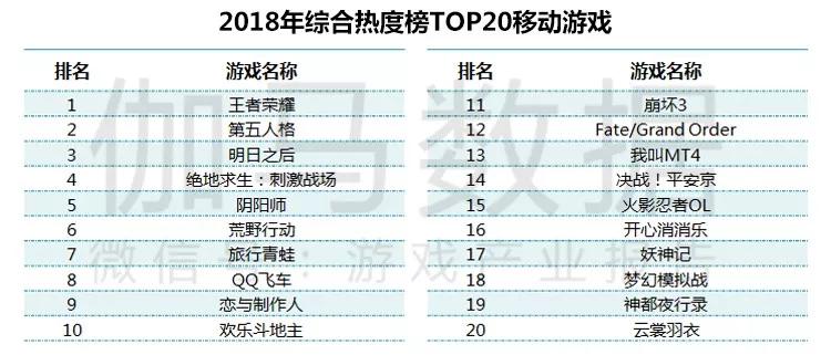 报告还公布了《2018年综合热度榜TOP20移动游戏》和《2018年海外流水TOP10移动游戏》。