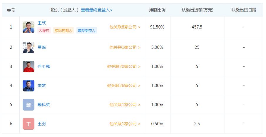 深圳市云歌人工智能技术有限公司股东(图片来源:企查查)