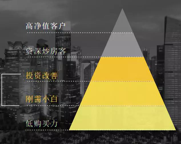 去掉最底层的低购买力无效需求之外,剩下的要买房子的人群区隔度依然很大,刚需、改善、炒房客、高净值人士。