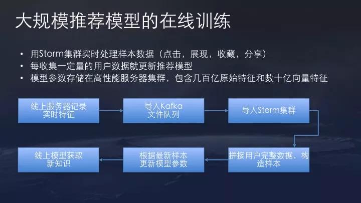 模型的训练上,头条系大部分推荐产品采用实时训练。实时训练省资源并且反馈快,这对信息流产品非常重要。用户需要行为信息可以被模型快速捕捉并反馈至下一刷的推荐效果。