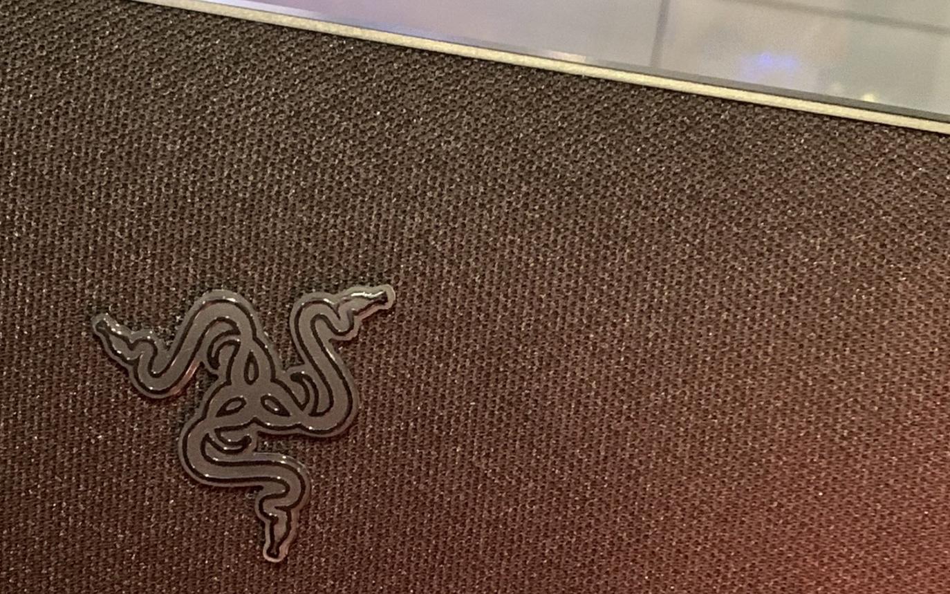 背面有织物的雷蛇显示器。