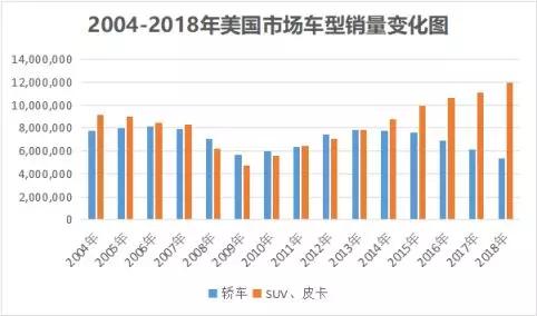 过去六年,北美的传统轿车销量一直在下滑,而且仍在不断萎缩,2018年轿车在轻型汽车销量中所占比例将不足三分之一。据摩根士丹利的一位汽车分析师介绍,预计在未来四年里,通用推出的新车中,轿车将不足10%,且九成将是卡车SUV以及跨界车。