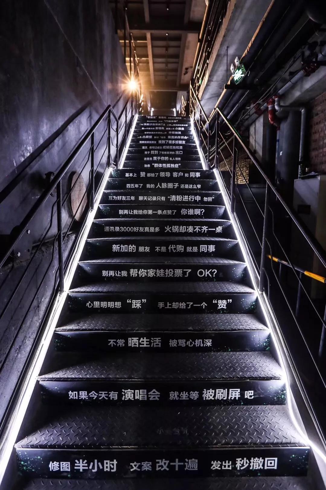 发布会现场,每级楼梯上都有一句怼微信的吐槽