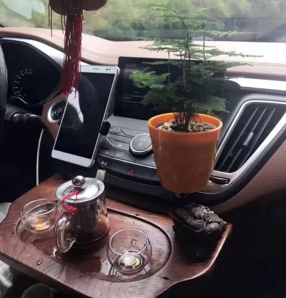 但在车内改装镶嵌一个功夫茶盘,这就近乎恶搞了,这是只有潮汕人才会干的事。