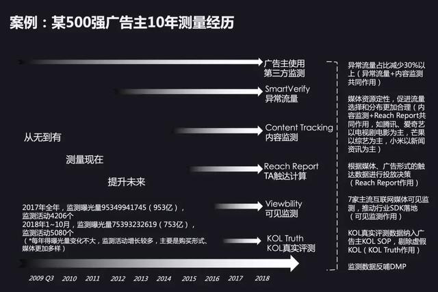 最早的时候,我们只要监测曝光量、点击量。但由于整个互联网广告里面的异常流量太多,像机器人流量,流量造假等现象,导致我们收集的流量非常多。