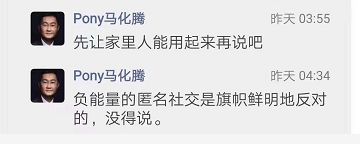 马化腾亲自上阵diss,“负能量的匿名社交是旗帜鲜明地反对的”。