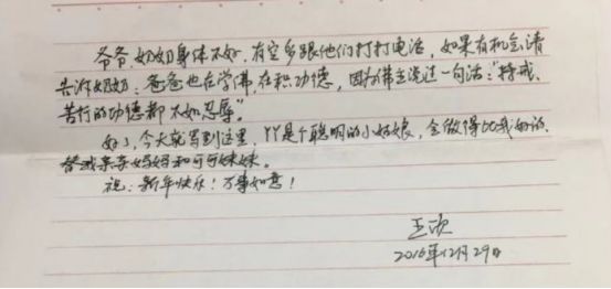 2015年春末,王欣在给妻子的信中写道: