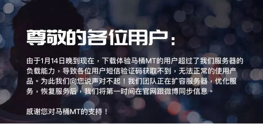 早晨,大量用户于官网下载并安装马桶MT后,持续显示验证码失败。