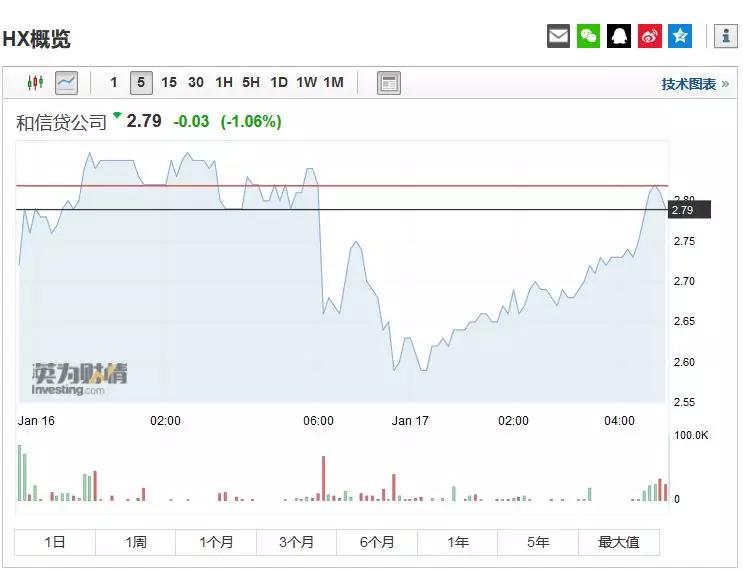 和信贷首次公开发行价格为每股10美元,共募资5000万美元,记者注意到,截至美股昨日收盘,和信贷股价累计跌幅已经超过72.1%,值得注意的是,其股价在2018年年末波动幅度较大,在12月的两个交易日中分别下跌27.73%和25.33%。
