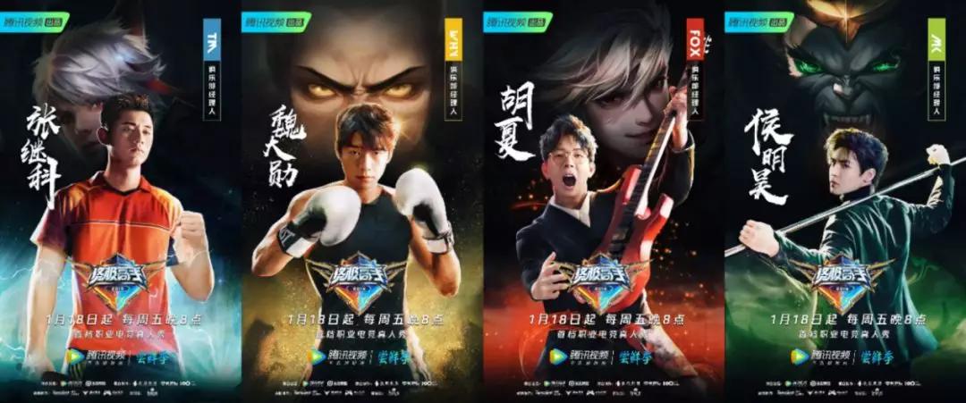 与《超越吧!英雄》不同,将在1月18号上线腾讯视频的《终极高手》是一档完全以《王者荣耀》赛事为主的职业电竞养成节目,被网友戏称为“电竞101”。张继科、魏大勋、胡夏、侯明昊担任经理人分别组建俱乐部,在100位王者30星的游戏玩家选出获胜者,直通KPL王者荣耀职业联赛。