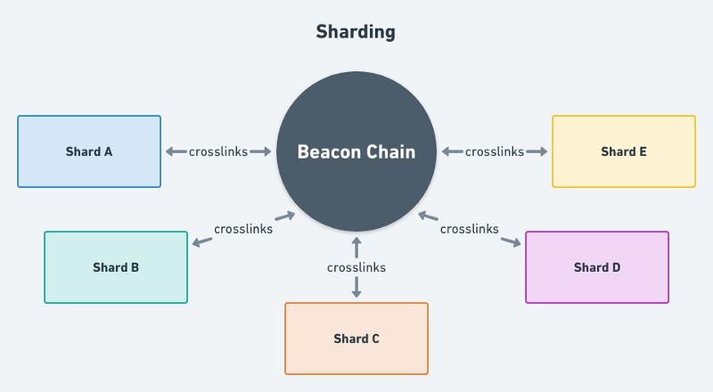 分片目的在于节点之间分割(Split)分片的状态信息,而无需要求任何节点都同时具备网络的全部图景。基于此,验证者不会验证所有分片。相反,信标链将协调其他分片的验证,所有验证者将进行信标链的验证。
