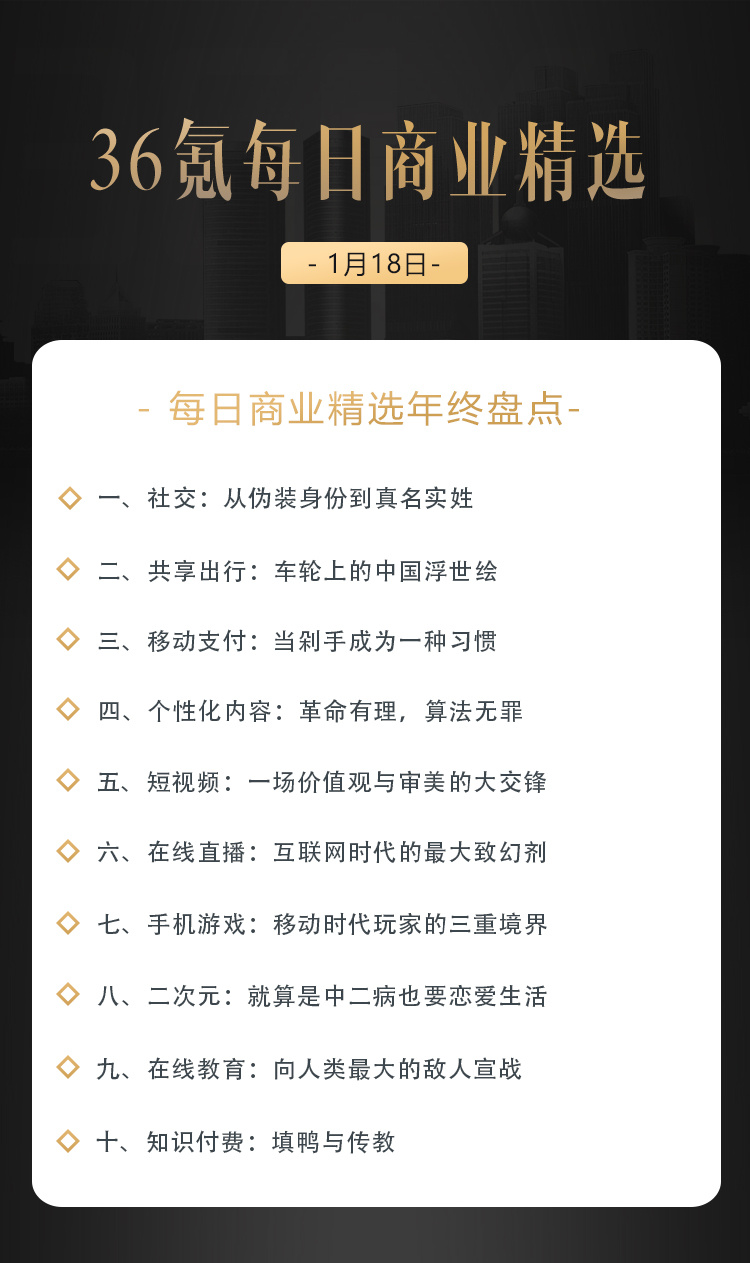 本文来自36氪付费栏目《36氪每日商业精选》——1月18日