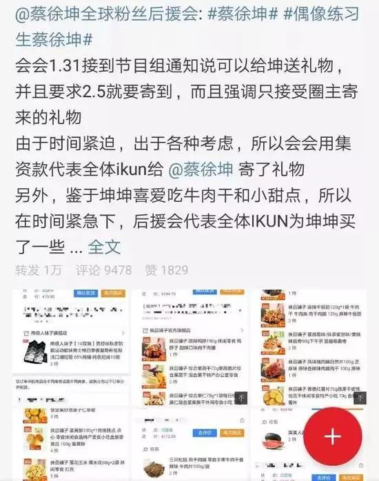 节目播出期间,不少自媒体就开始用“土”来形容选手。随后,在节目组举办的小年夜送应援礼物活动中,人气选手蔡徐坤的粉丝后援会,一举包揽了20双南极人袜子(4元/双)、满199减120的良品铺子大礼包、三只松鼠大礼包、舒服佳洗手液,以及2个西瓜……随后,这一应援行为被冠上了“土味追星”的称号。