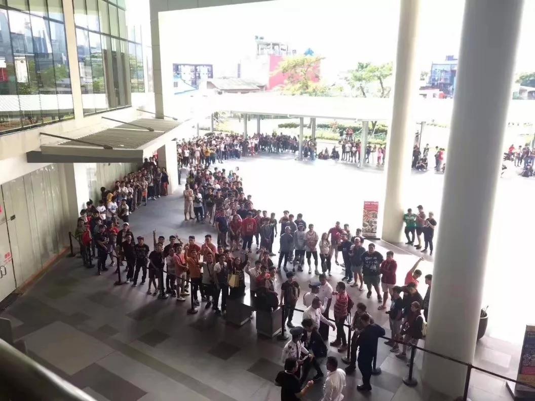 就像现场排队的观众一样,在等待期间,菲律宾玩家可以坐在地上,开黑,打《Mobile Legend:Bang Bang》。