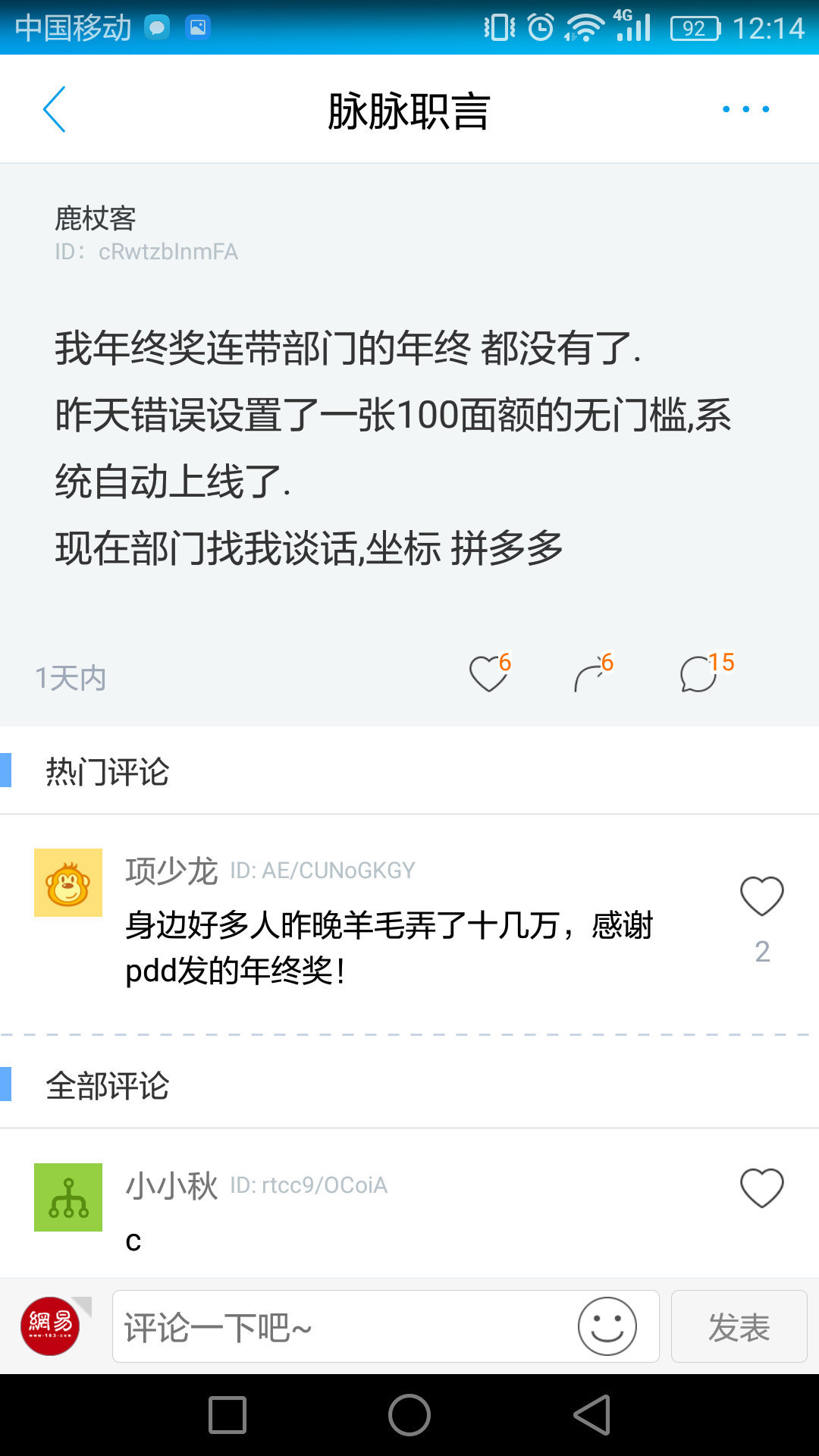 在某职场社交应用上,有疑似拼多多员工声称是公司内部流程出现了问题从而导致了此次事故。拼多多随后回应称是“谣言”。
