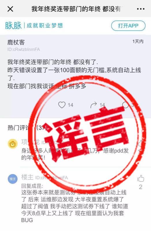 最新消息,该回应为有心人假冒拼多多员工发布,已被辟谣。