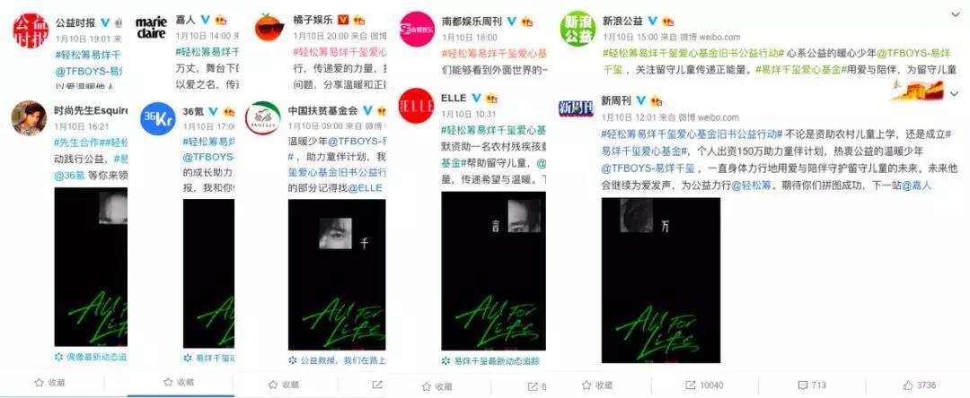 借助易烊千玺的号召力,并邀请36氪、新周刊、嘉人、ELLE、思想聚焦等不同领域的KOL共同支持,截至目前,轻松筹这一活动的微博话题阅读量超过8300万,全网 传播覆盖近1.6亿人次,先后有10万爱心人士通过线上及线下方式参与到活动中。这样的数据表现在以往不可想象,但不断涌现的案例表明,公益与互联网的相互结合其实是一件双赢的事情。