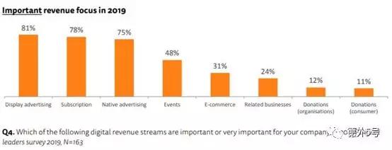 两张图表之间的差异说明,广告展示和原生广告仍然重要,但未来的重点是开展或增加订阅和捐赠。